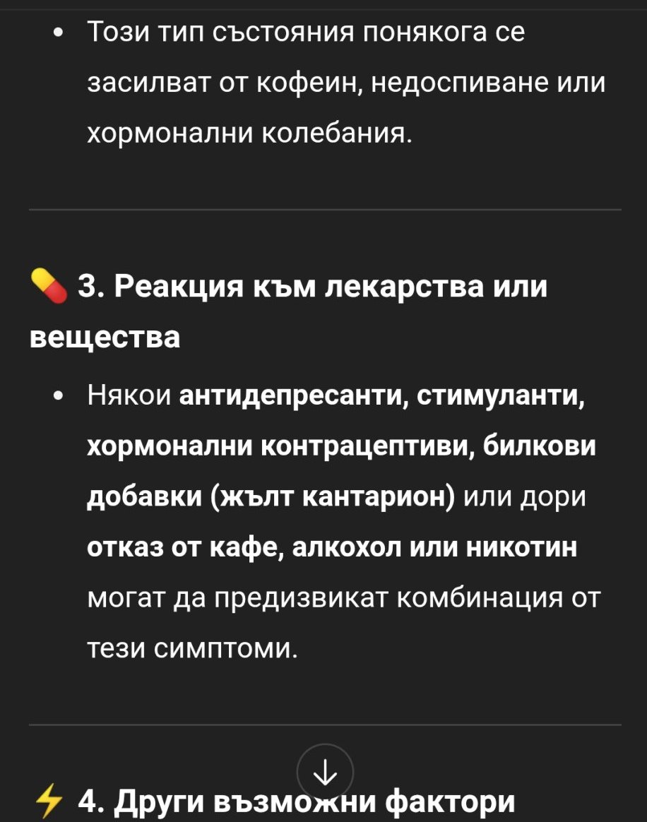 Авторке, аз не съм фенка по принцип на ИИ, но отворих и въведох симптомите ти. Направи го и виж какво излиза.