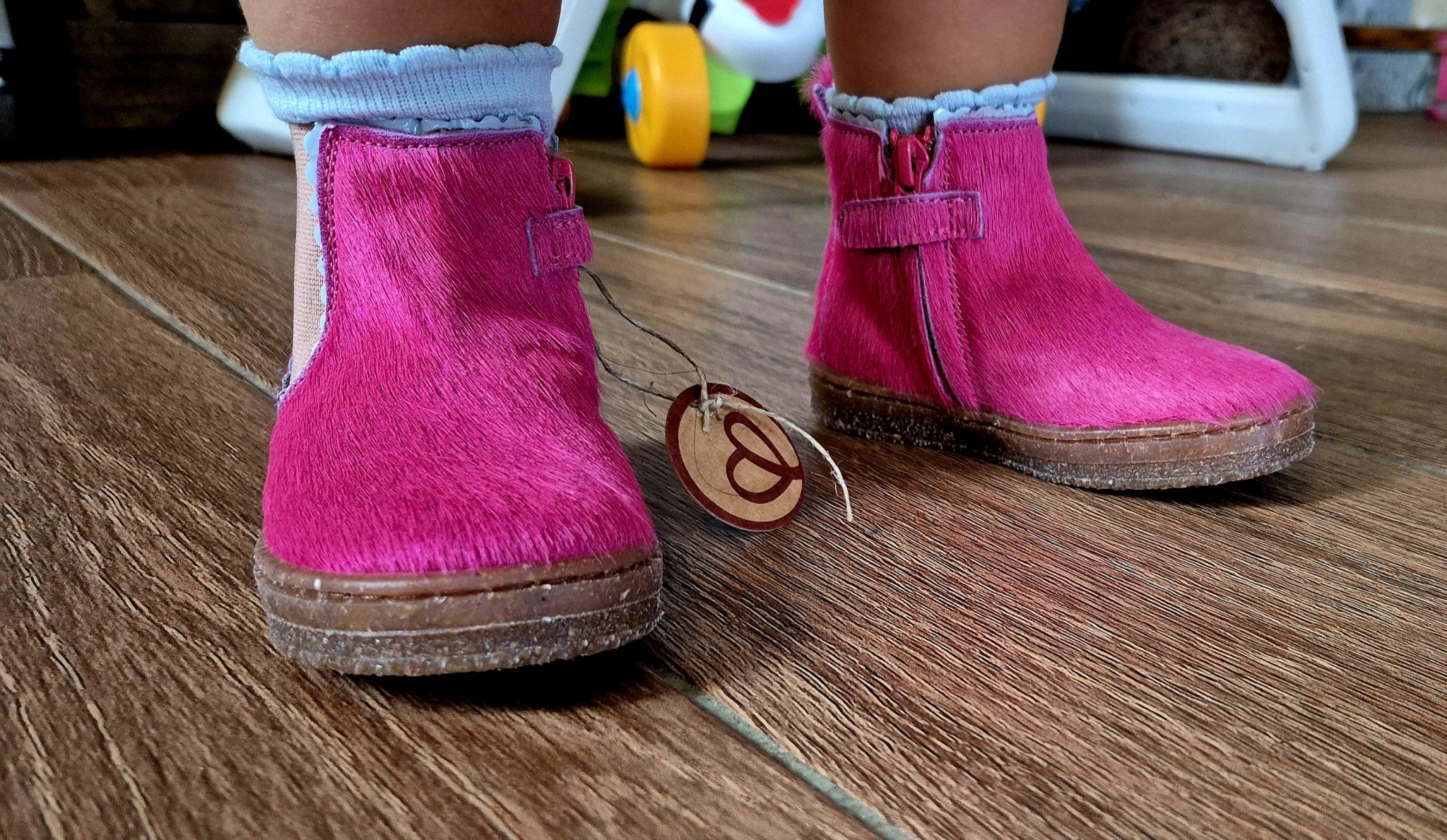 22 номер са, станаха й точно както трябва - с разстояние отпред. Значи не е с плавник, а около 21½, само дето я жалех, че много модели обукви няма да й станат, като стане мацка! 😆