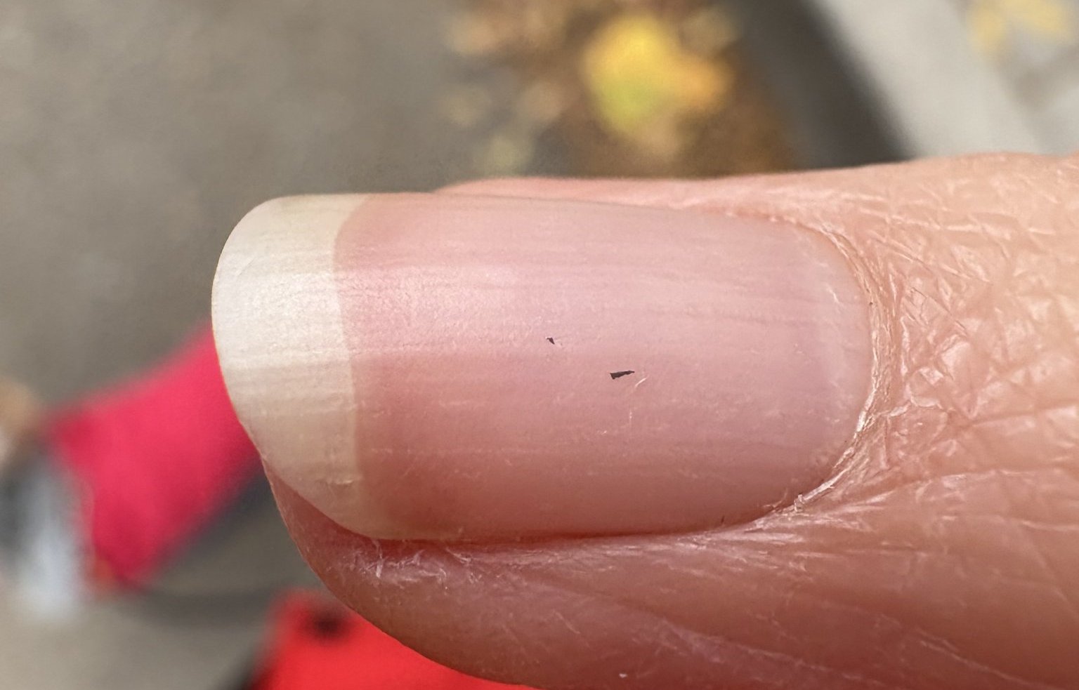 Вероятно въпросът ми не е за тук, но малко се притесних. Преди няколко дни забелязах тънка черна линия, която изглежда да е върху нокътя. Не си спомням да съм се удряла. Какво може да е?