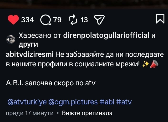 Сикорски, можем да коментираме Мерт колкото си искаме, все пак е патрон на темата ни Heart Eyes По-добре да коментираме реални снимки, отколкото да слухтим 24/7 и да носим инфо от заключени профили в х Grinning А който си мисли, че Афра и A.B.I. имат нужда от съмнителен пиар, за да съществуват изобщо, много сериозно се е объркал Stuck Out Tongue Winking Eye