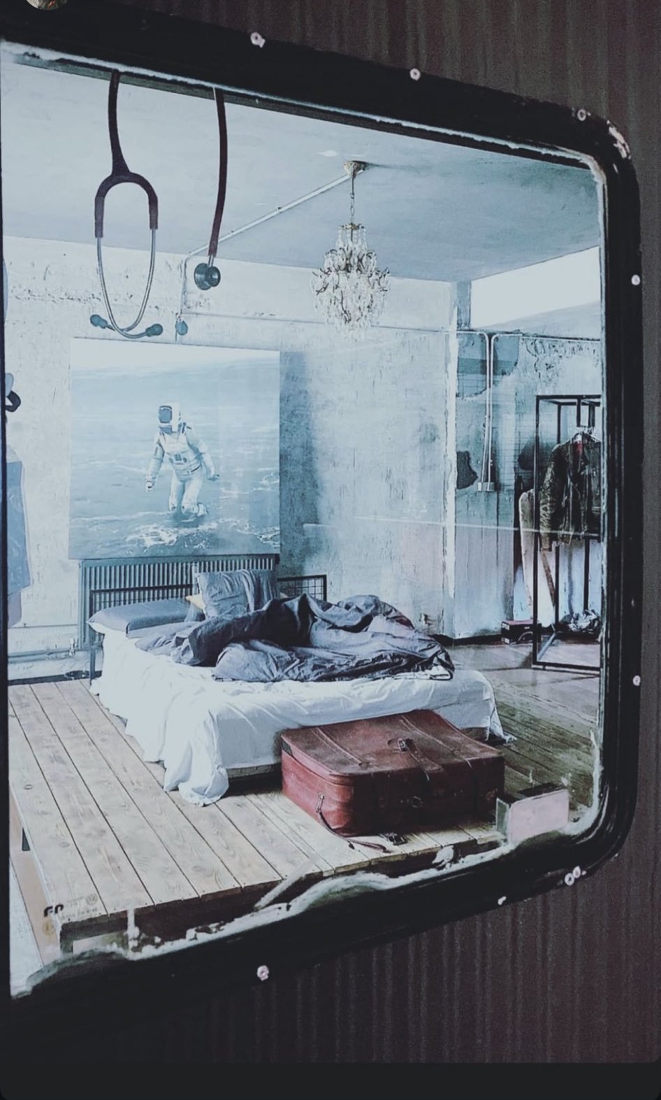 "Безценното ми мнение" Sweat Smile е, че ни предлагат стая на мъж-лекар, който не се е застоявал на едно място, готов всеки момент да хвърли в куфара най-необходимото и да потегли нанякъде. Дом, уют ... няма в тая картинка. А голямата снимка на мъжа във водолазен костюм ми навява мисълта, че е участвал в някакви военни операции, което предположих в началото, или пък е някой дългогодишен спортист с афинитет към екстремните спортове. Не ми прилича на снимка от някакво романтично приключение.