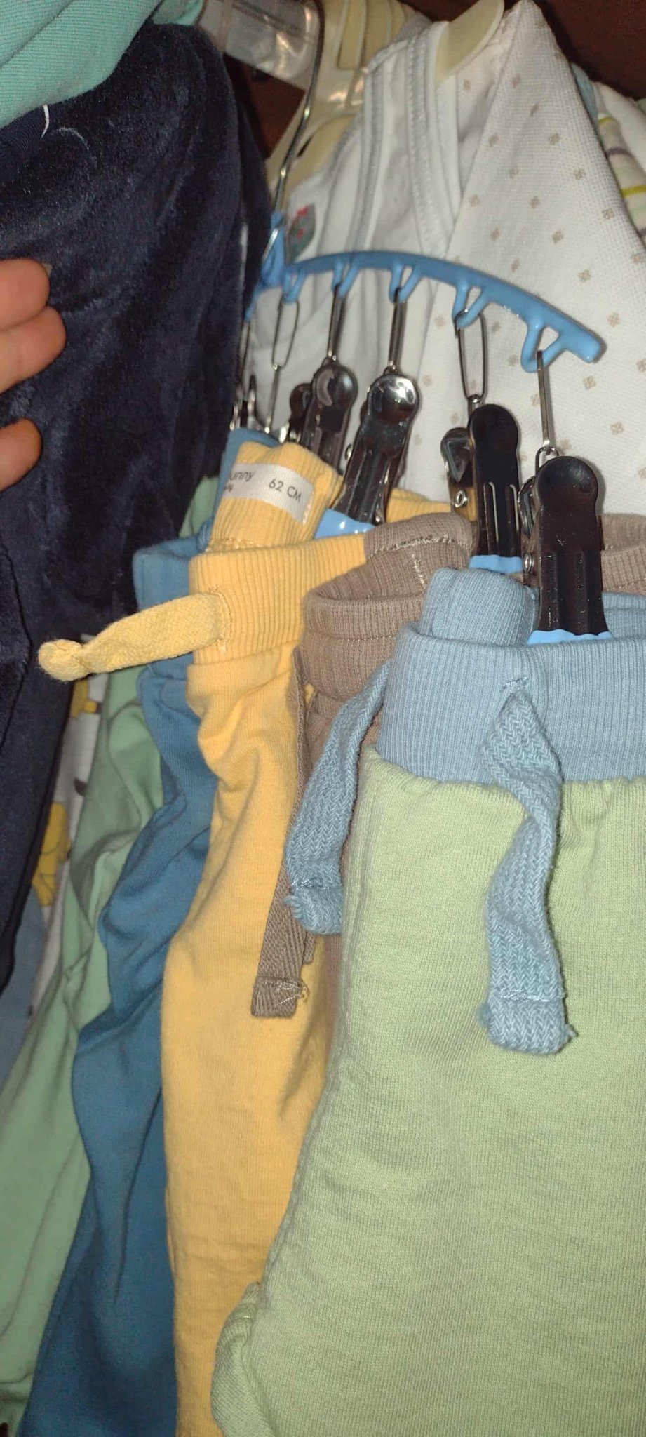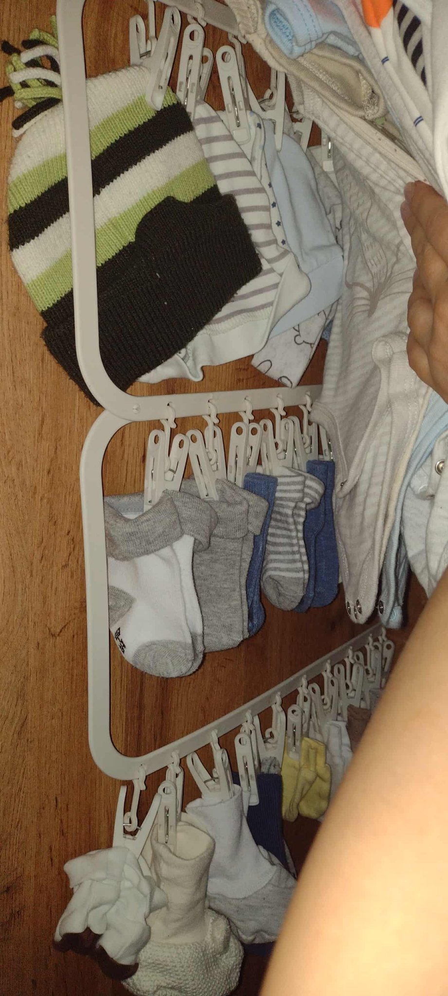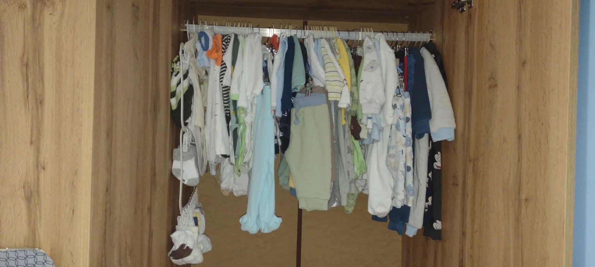 Качвам снимки да дрешките/те са в по-голям размер, малките са прибрани в кутии и ще бъдат подредени в чекмеджетата на леглото/ в гардероба и вида закачалки.