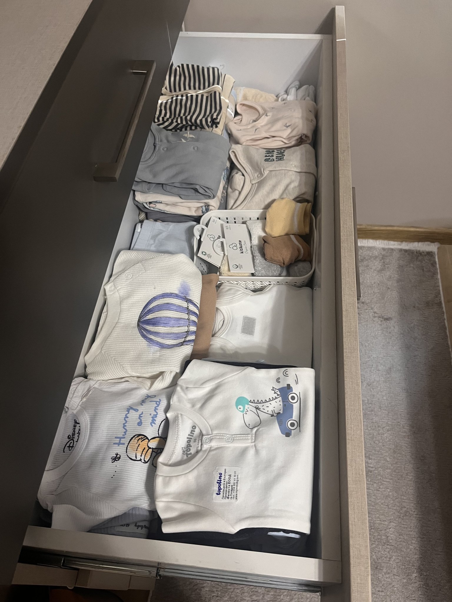 Аз подредих нещата на бебко, но още не съм ги изпрала. Но не бях сигурна дали скрина ще събере всичко без да се намачкат... В 31+4г.с съм. Вие кога мислите да ги перете?