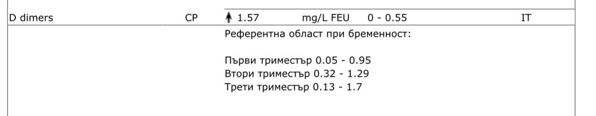 Колкото до Д-димера, когато ви взимат кръв кажете, че сте бременна, за да може на резултата да има референтни стойности за бременни. Прикачвам моите Simple Smile
