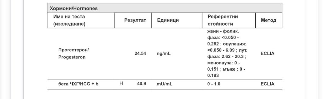 Аз да актуализирам,на 13 ноември след преглед при Цветков се видя плоден сак и по ПРМ ме определи като 4+3 .Вчера след зацапване и тъмна кръв изтичах до Адела по спешност ,видя се отлепване и го измери 5+6.Препоръча ми почивка ,лежане и ми смени терапията, от вторник когато ми е следващият преглед ще съм на антибиотик.Стиснете ми едни палчета да има положителен развой.