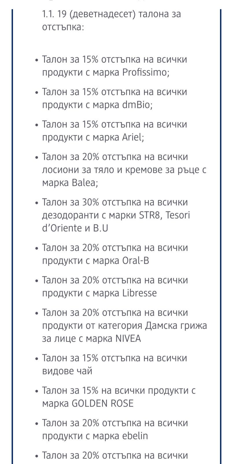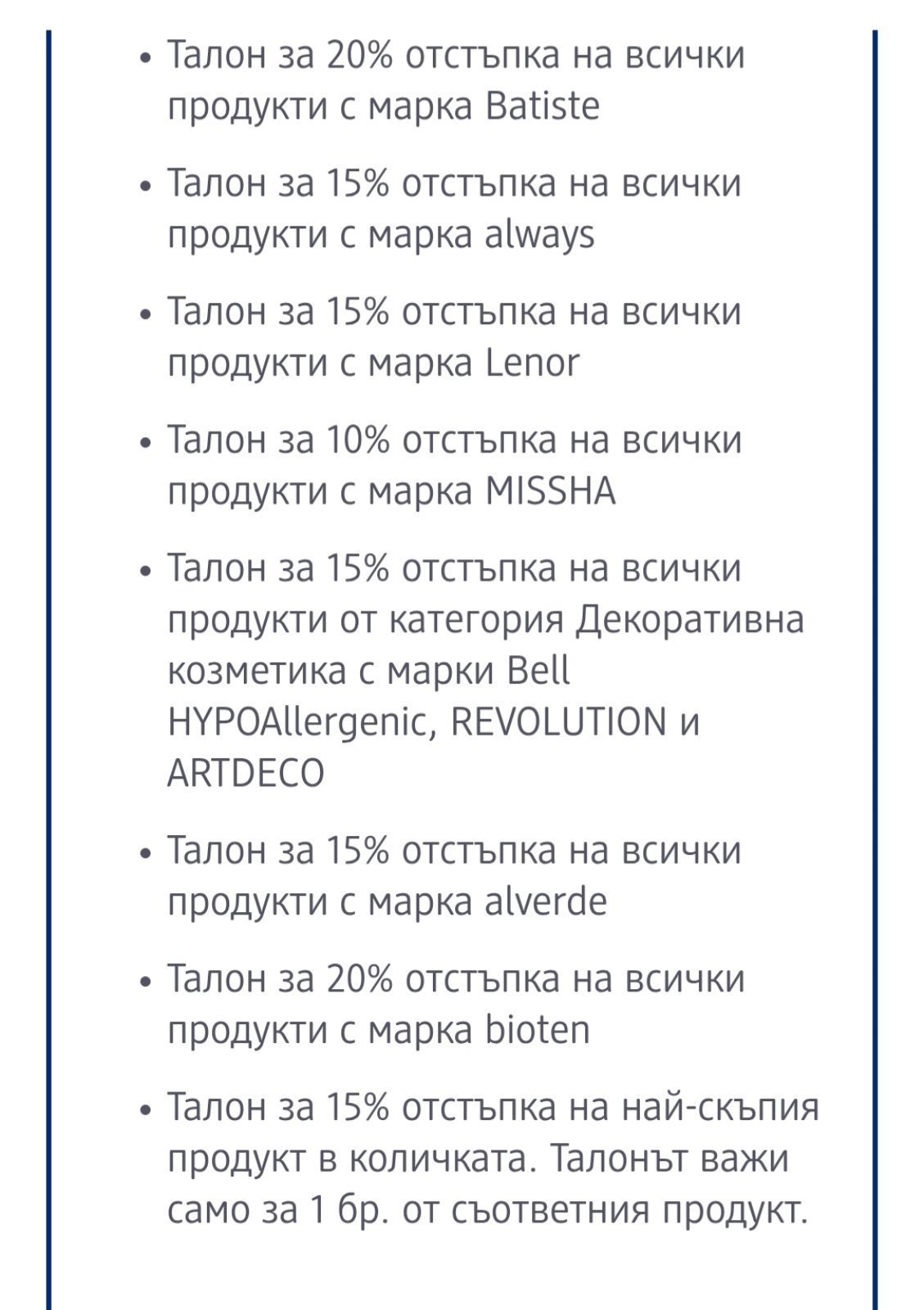 Хоп-Троп!, благодаря за информацията! Очаквах намаление на всички продукти на Balea, а то е само за лосиони за тяло и кремове за ръце. Със сигурност ще взема и от двете. Но пък е супер всеки ден да имаме нови талони и изгодни оферти 🙂