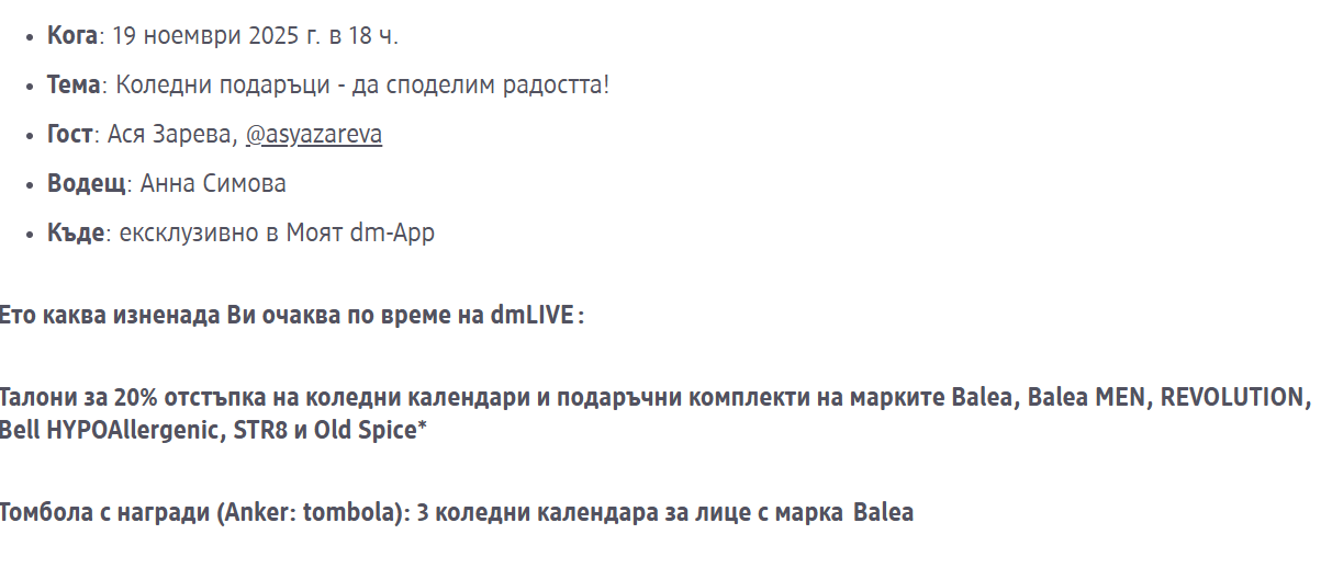 Споко, аз прочетох, че важи само за магазина на ДМ в Бургас, ЖК Изгрев бл. 207, така, че какво от това, че го имам, като не съм в Бургас.