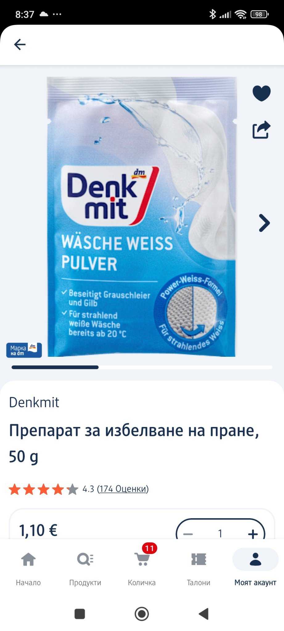 И аз използвам това, което е показала DeVa® и още един Denkmit Препарат за премахване на петна Oxi Power, от който съм много доволна. Преди години бяха два отделни препарата за бяло и за цветно пране, сега е само този- универсален. Ползвам го за петна, силно замърсени работни дрехи и избелване. Прилагам и дозирам според указанията.