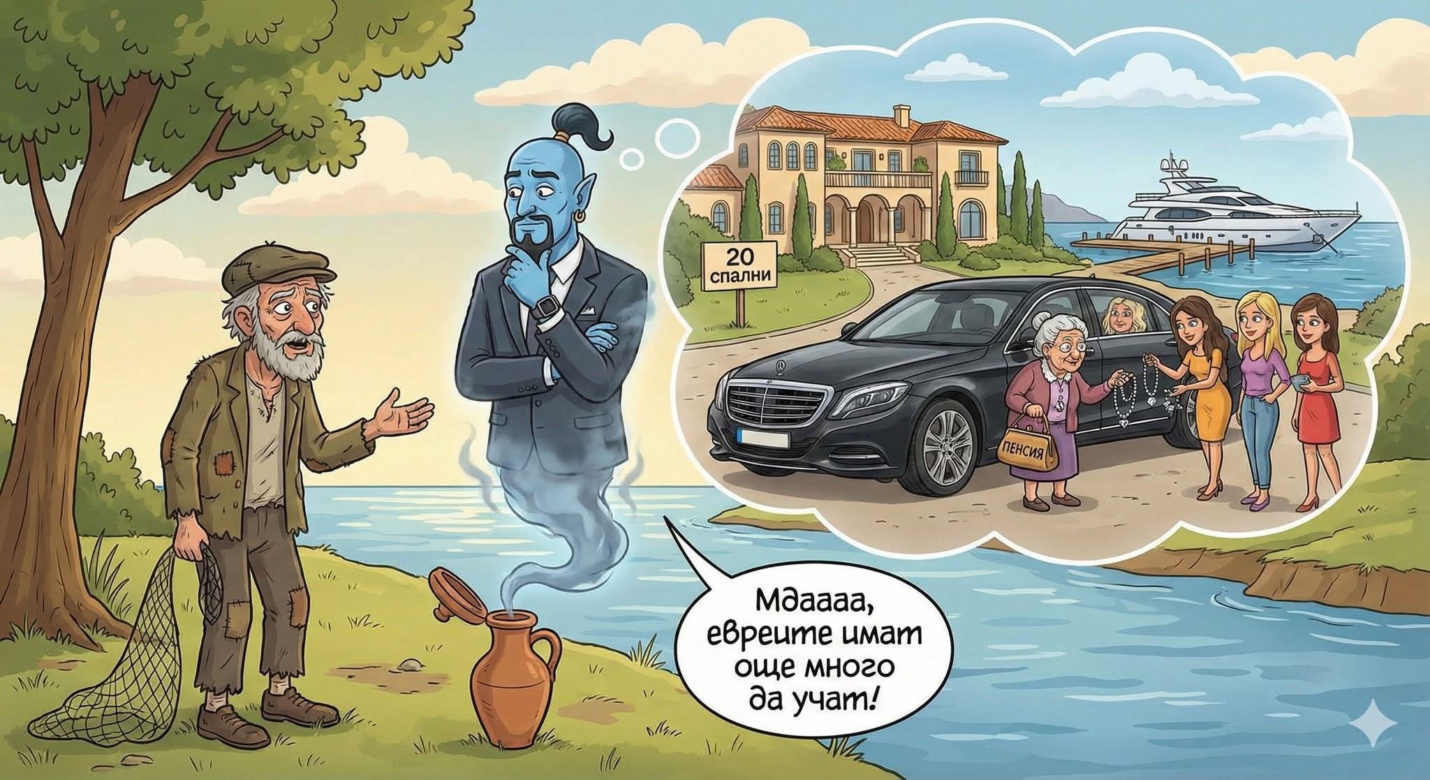 - Мдаааа, - почесал се по брадата духът, - евреите има още много да се учат.
