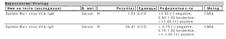 Това изследване правилно ли разбирам: няма в момента мононуклеоза, но е прекарана.