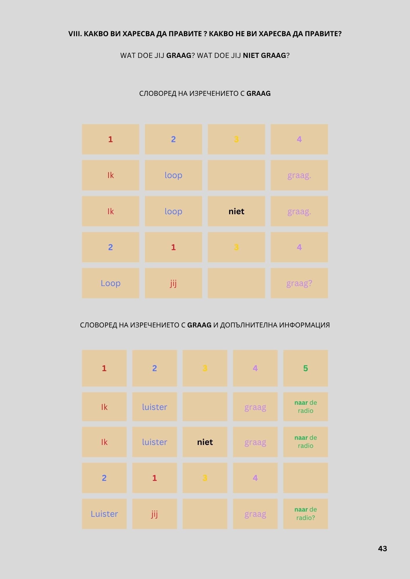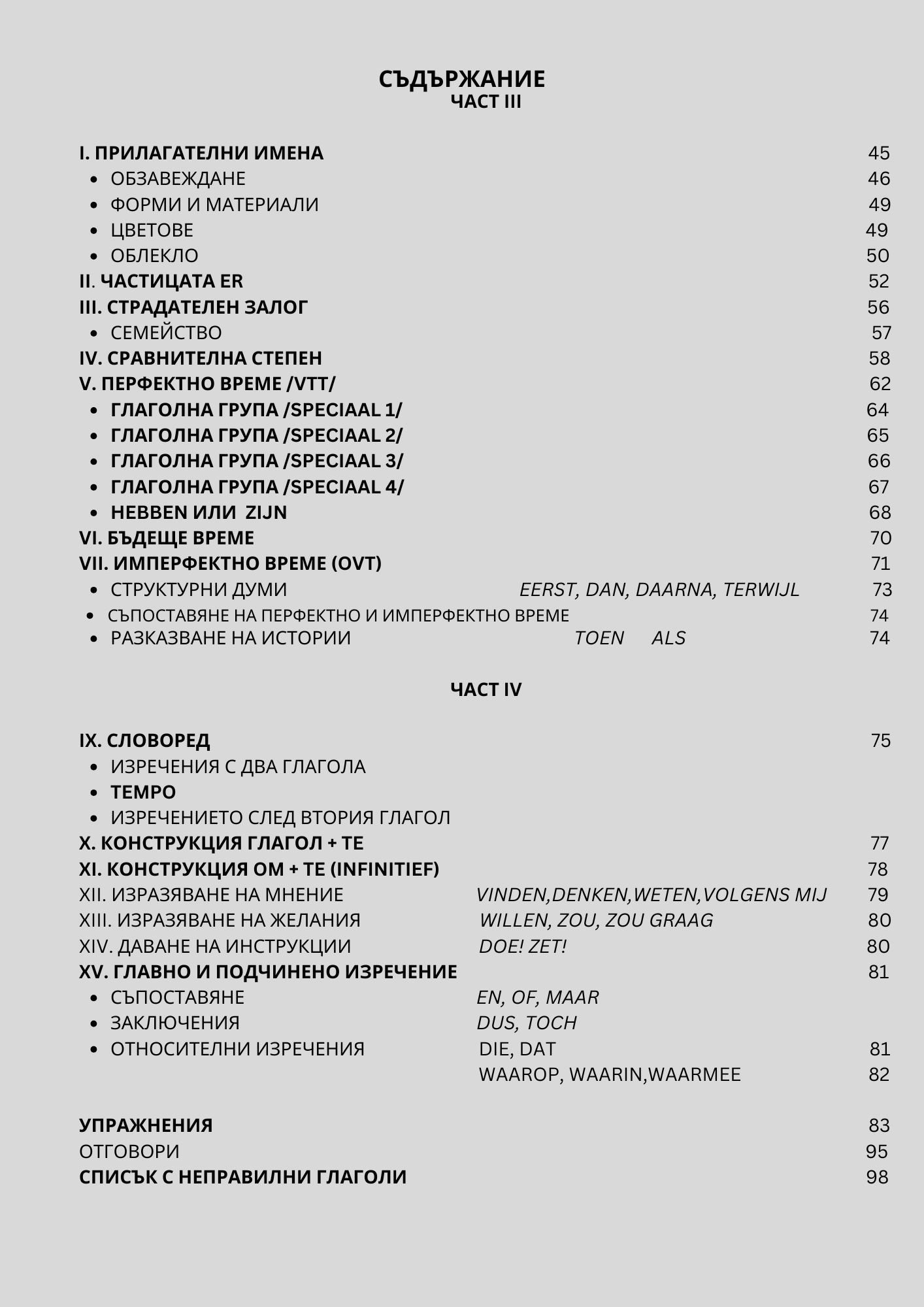 Насреща съм за обсъждане на конкретните теми. Ако имаш затруднение по някоя от темите, мога да споделя повече упражнения от нидерландските учебници.