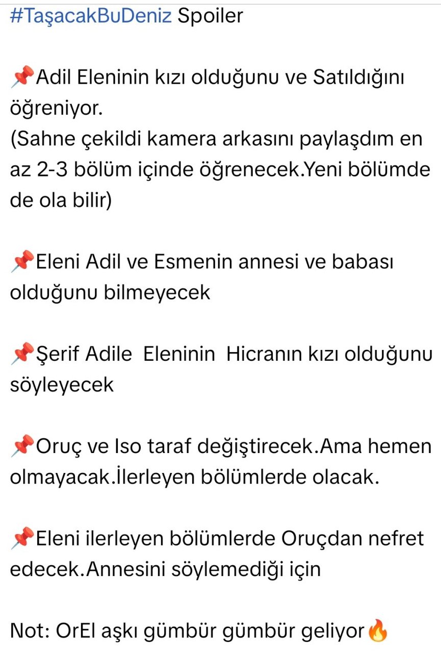 Онче, не напразно мисля че натъртиха че Хиджран и Адил са имали някакво вземане-даване навремето. То е било повече от нейна страна, де, ама... И Шериф във първия фраг показваше на Есме някаква снимка на Адил и Хиджран от преди 20 години, че са били заедно.... Не мисля че е напразно. Ще я пробутат за майка на Елени, но не вярвам Елито и Адил да се хванат лесно. Може би след първоначалният шок, ще се усетят че нещо не им пасва