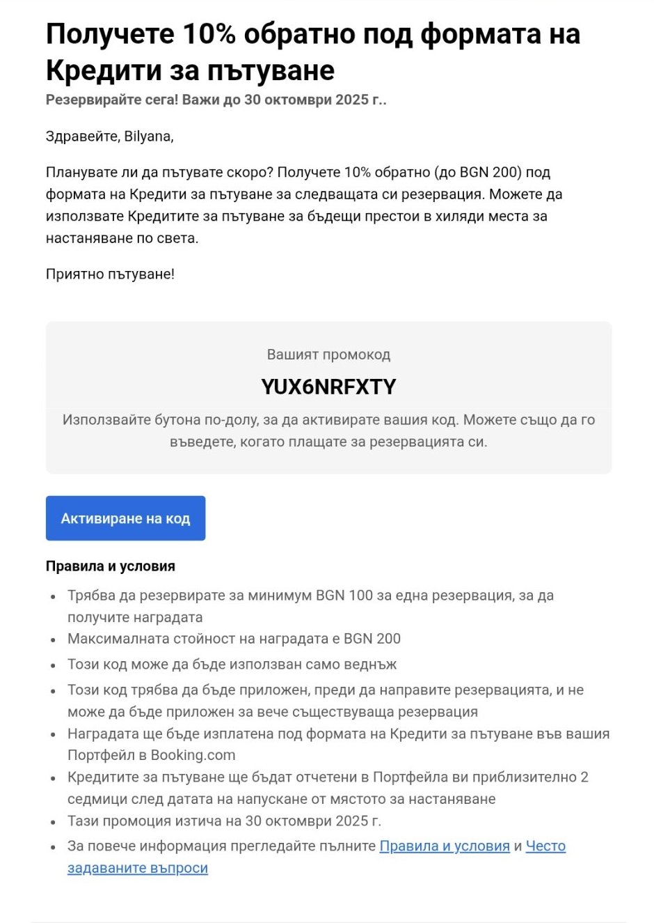 И аз моля за код за Booking. Предварително благодаря!