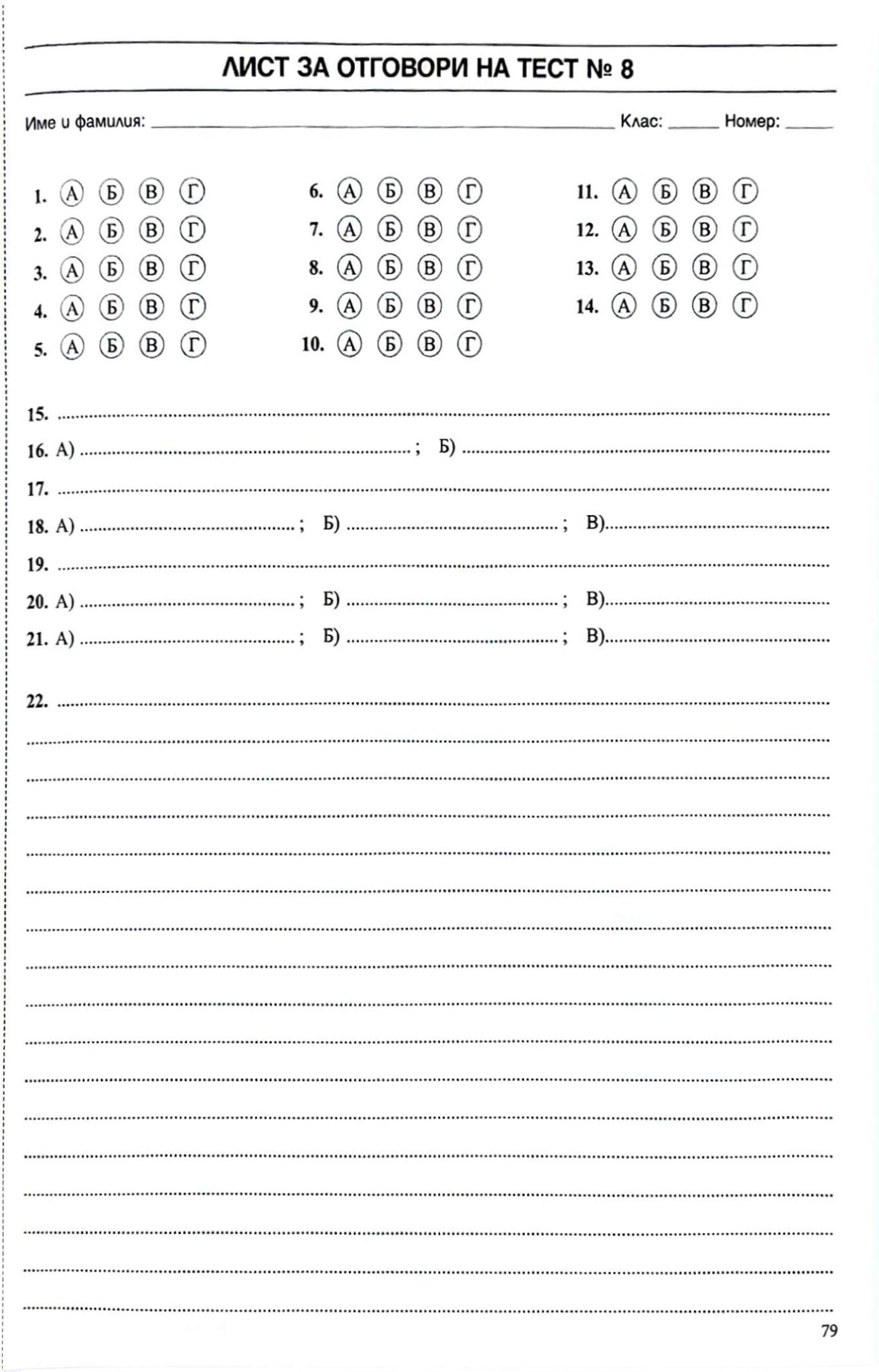 Сканирах и листовете за отговори от тест 1 до 6 включително (на 7 и 8 също ги сканирах и са след отговорите на съответния тест ).