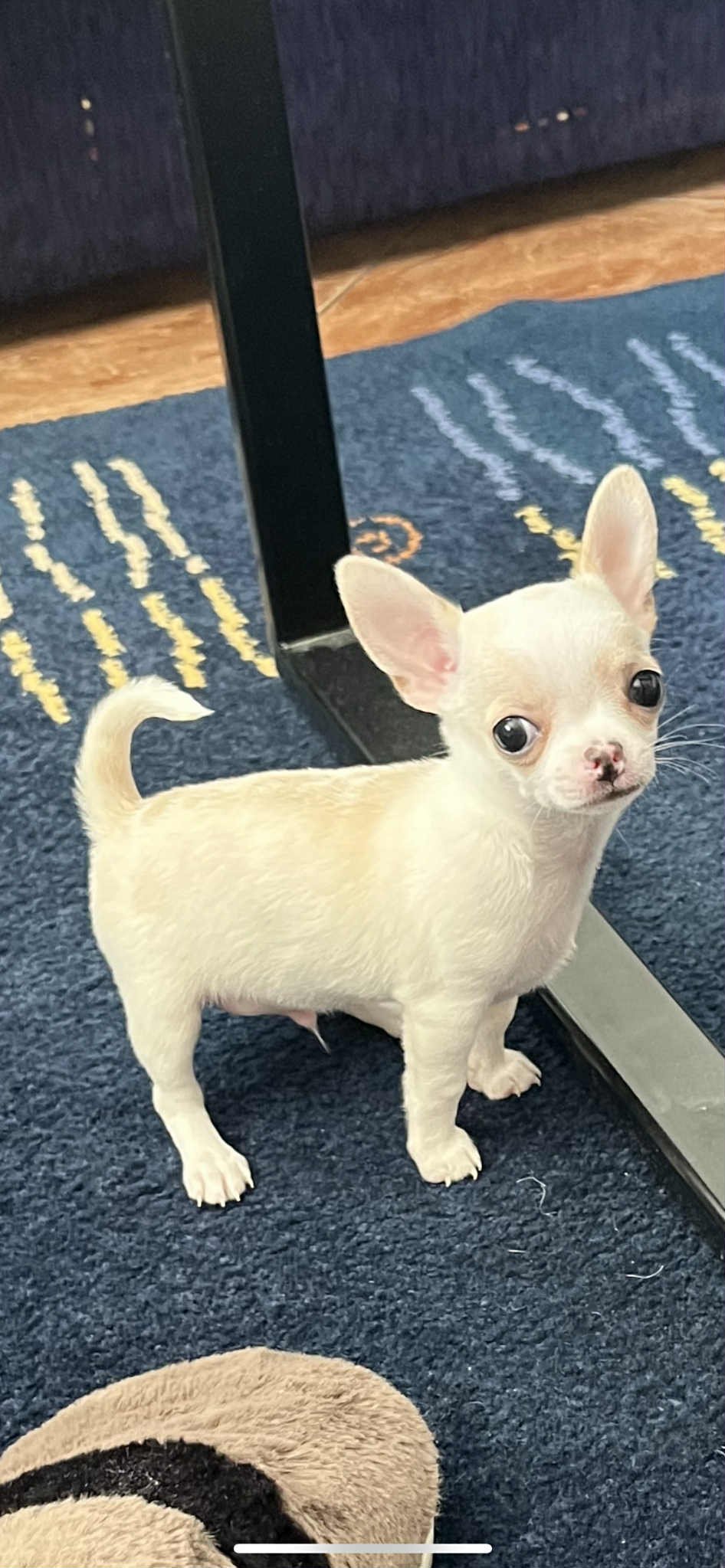 Моят съпруг първоначално не го искаше , от лояност с предното ни куче и първоначално не му обърна внимание около половин час, но откакто го взе в ръце до ден днешен (ще станат скоро три години) не го испуска от ръцете си. Убедини ни и целта да не го унищожим, защото той беше някакви 600 грама. Ние такива животни не бяхме виждали. Първото ни куче немски дог ( огромен) , второто французин, доста едър и накрая ... Вачо Simple Smile