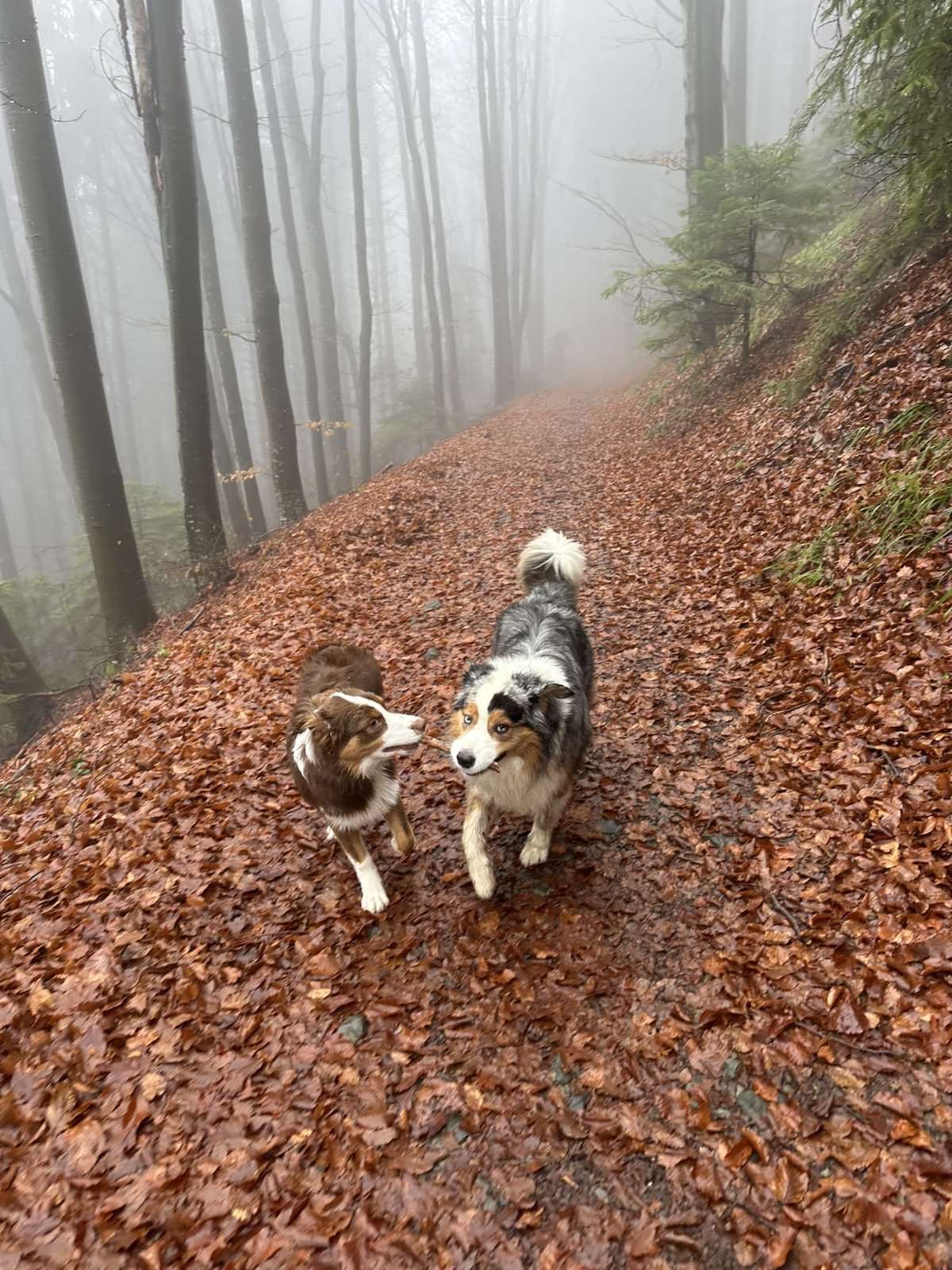 Ето ги в гората и мъглата (тук си носят заедно пръчката, няма кавги):
