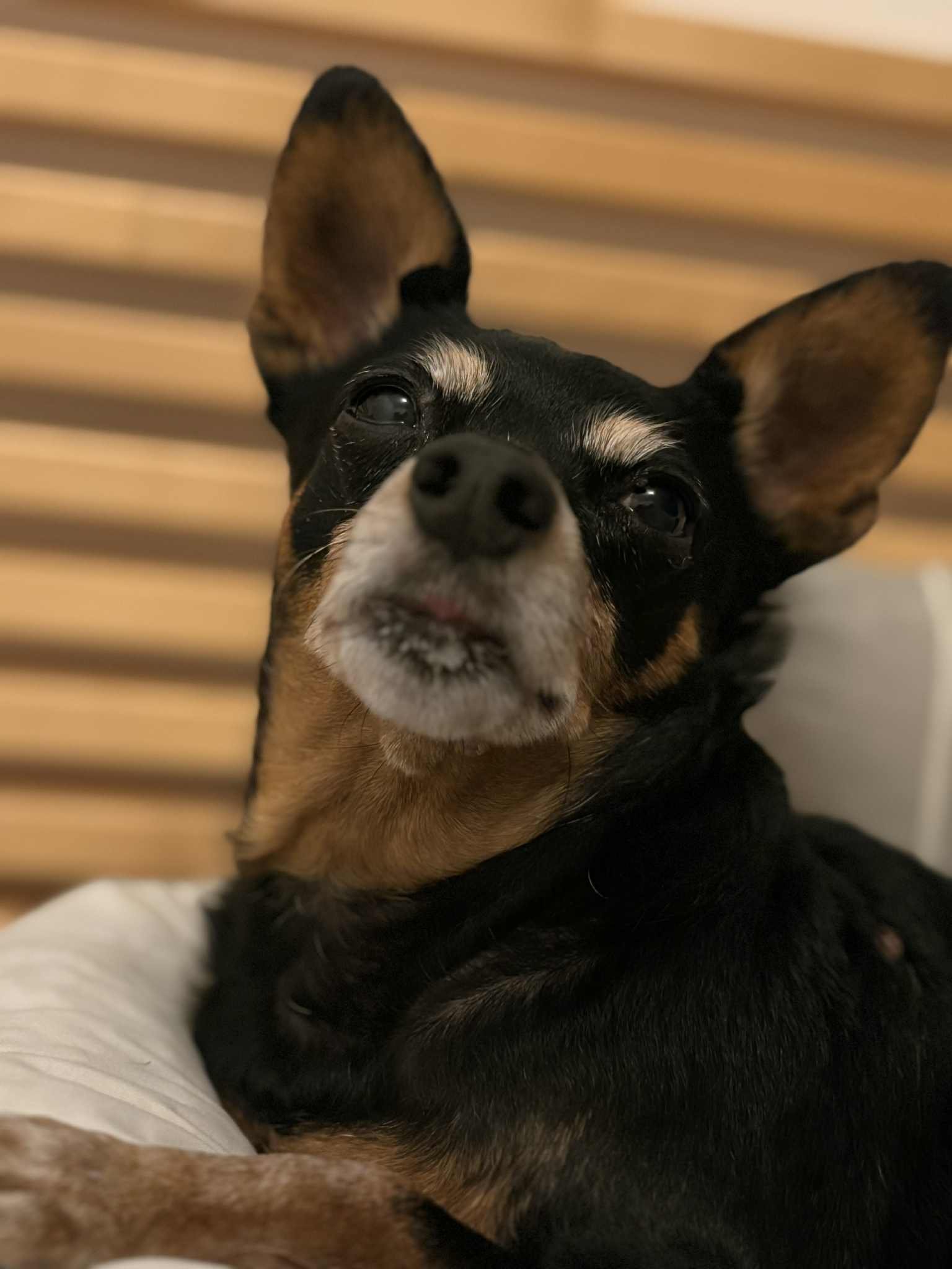 Оказа се, че в мазето на къщата има мишоци и се качват до една от стаите на първия етаж. Ева е виден мишерадар. Показа всички входове на мишоците към стаята. Застава на мястото където ги чува или надушва и показва. Запълнихме дупките и сега е страж на етажа.