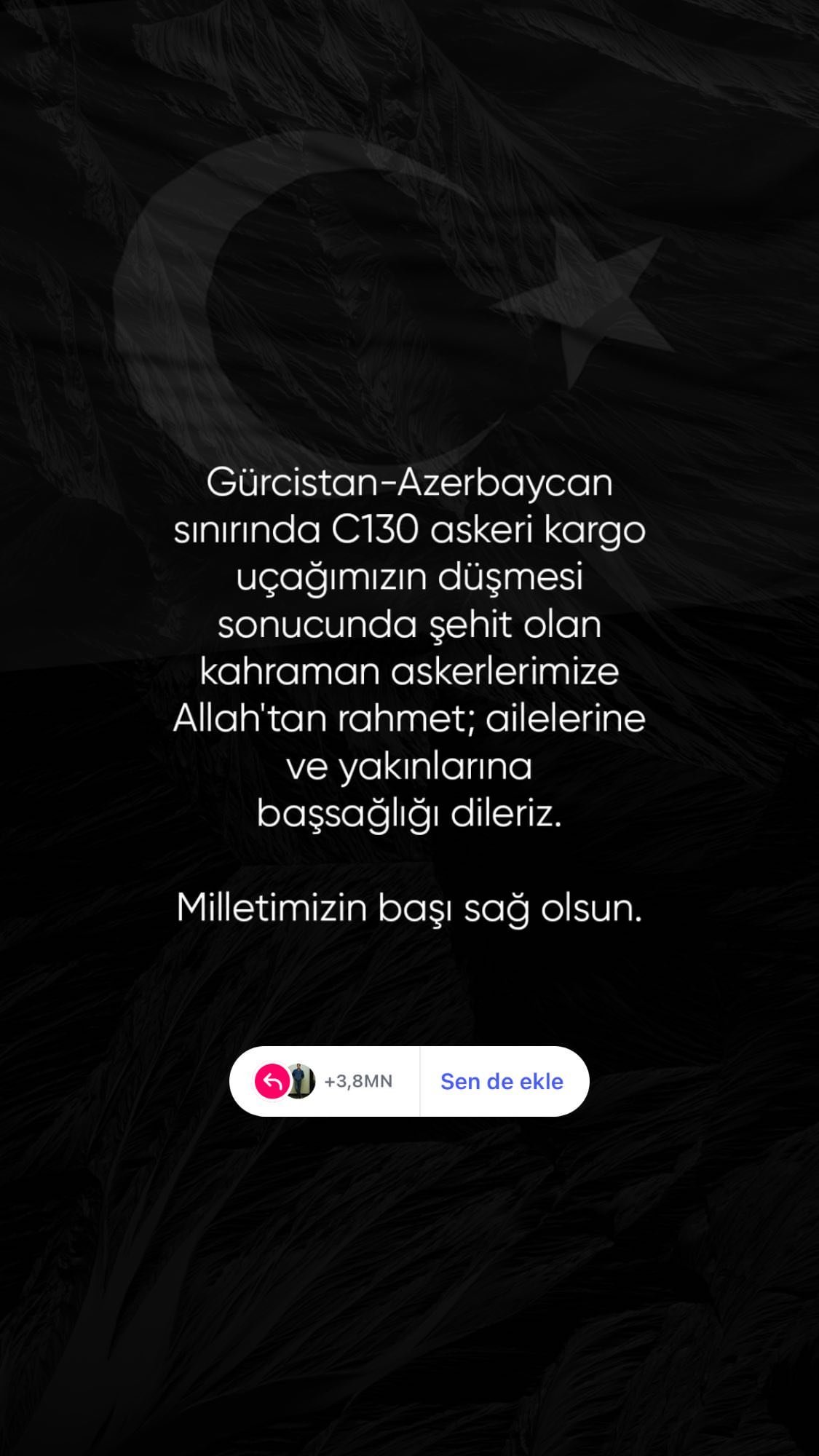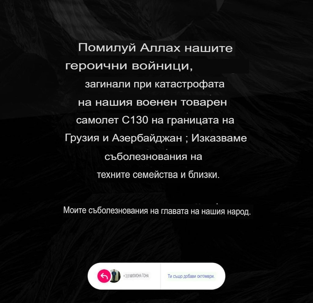 "Припомняме, че турски военен товарен самолет C-130, превозващ 20 военни, се разби във вторник малко след излитане от Азербайджан на път за Турция."