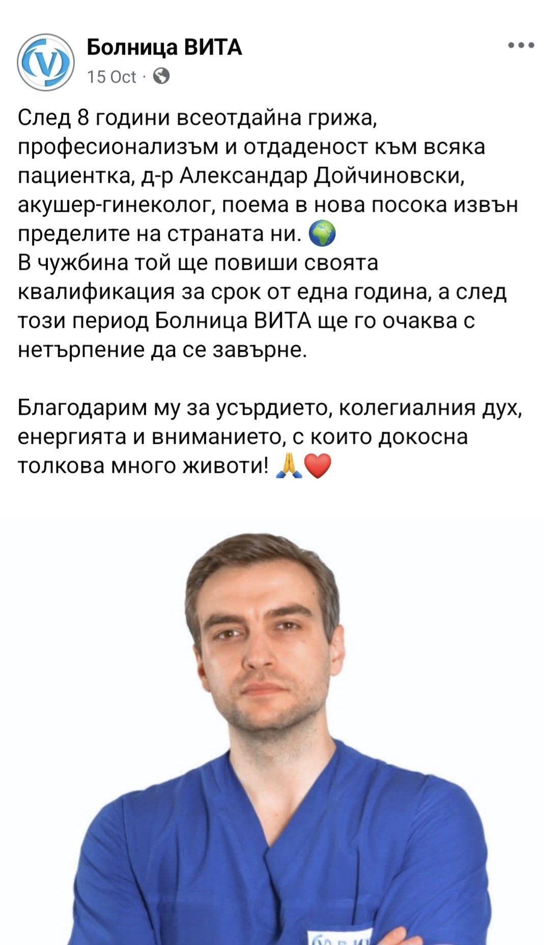 Сигурно е. Имаше и официално обявление на страницата на Вита. Самият Дойчиновски пренасочи пациентките си.
