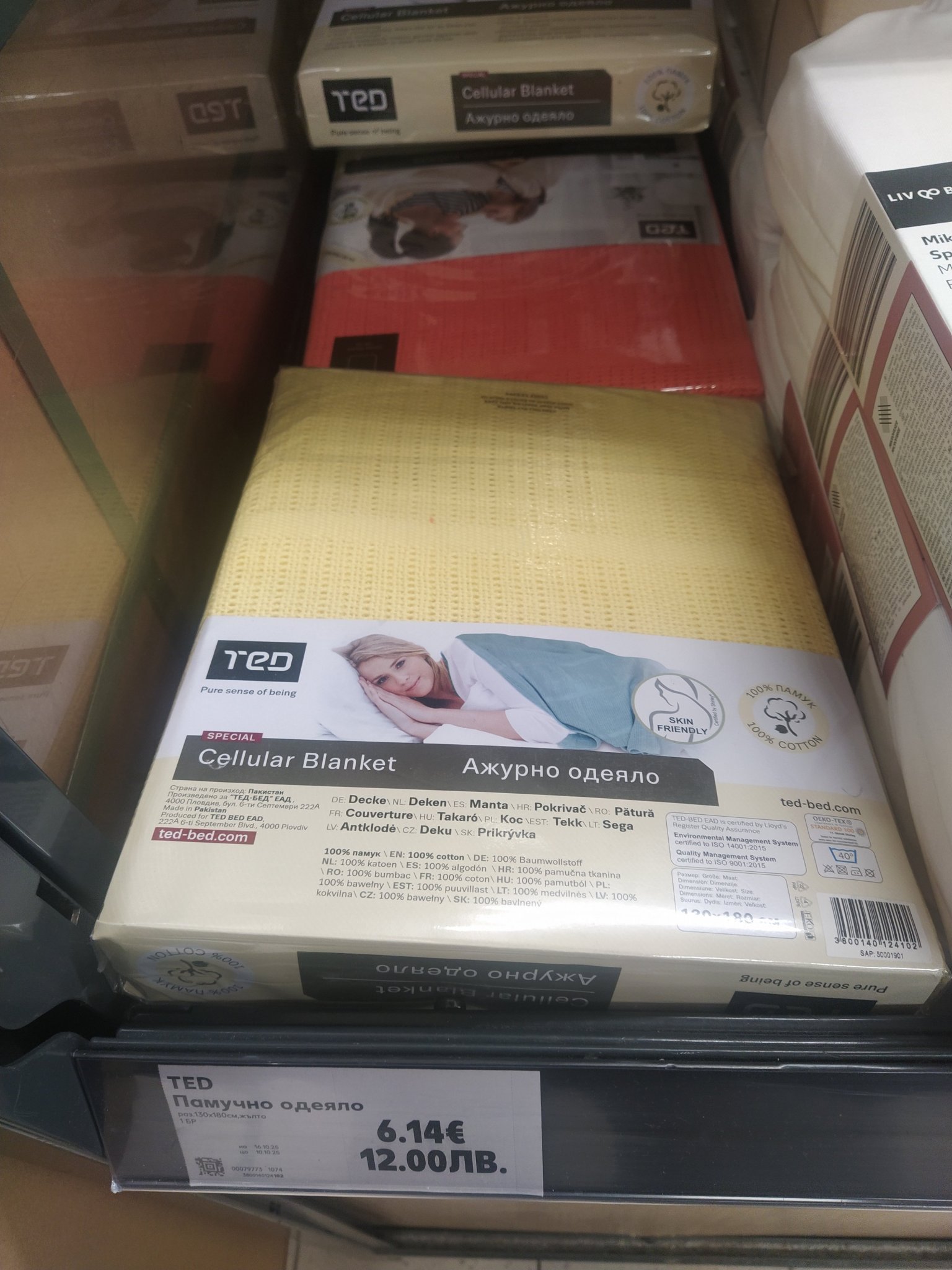 Аз си направих черен петък вчера😉 Огледайте вашите К., това в Ботевград го открих, памучно, ажурно одеало. Имаме едно синьо, за над 30 лева съм го купувала и е бой лятото, кой да го ползва. Сега вече сме окомплектовани цялото семейство, мъжът ми ще е с кораловото😆