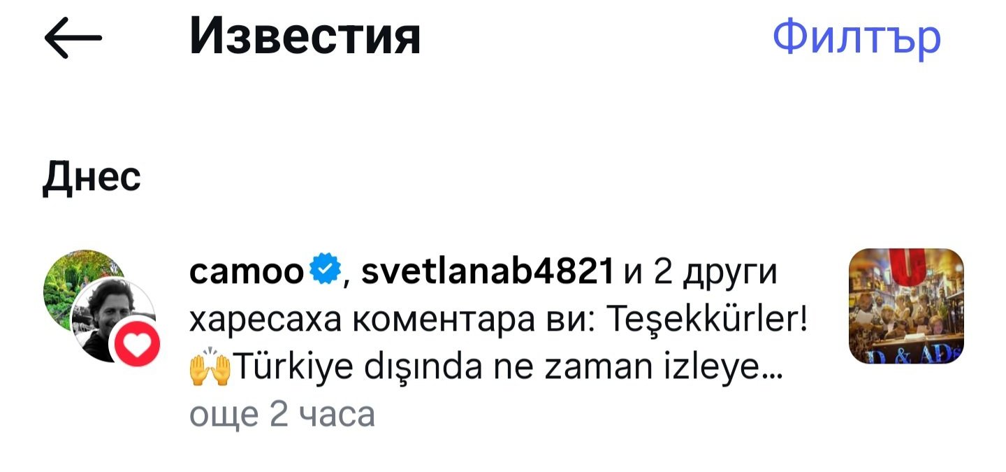 Бях му писала под една публикация коментар с въпрос кога ще гледаме филма извън Турция.