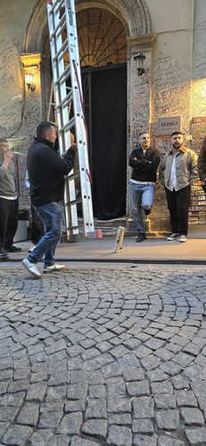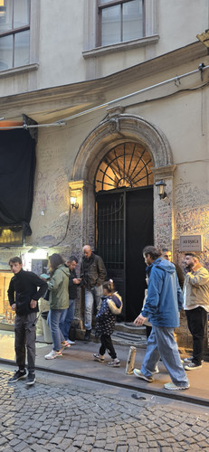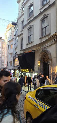 Гери, улицата не е затворена. Хората минават, то там са направо тълпи от хора. Но ги приканват да минат по-бързо, когато се спират, им казват, че не може да стоят тук, че не може да снимат. Опитват се да държат голям периметър свободен от хора.  Там обаче има магазинчета, кафенета, няма как да я затворят. Може би като идва Чаатай  с кадилака е малко по- трудно. Улиците са много тясни и претъпкани около Галата.
