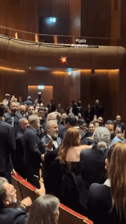 Точно така, Гери, стоеше до Енгин и другите актриси от компанията му. До тях беше и Левент, с дамата си.