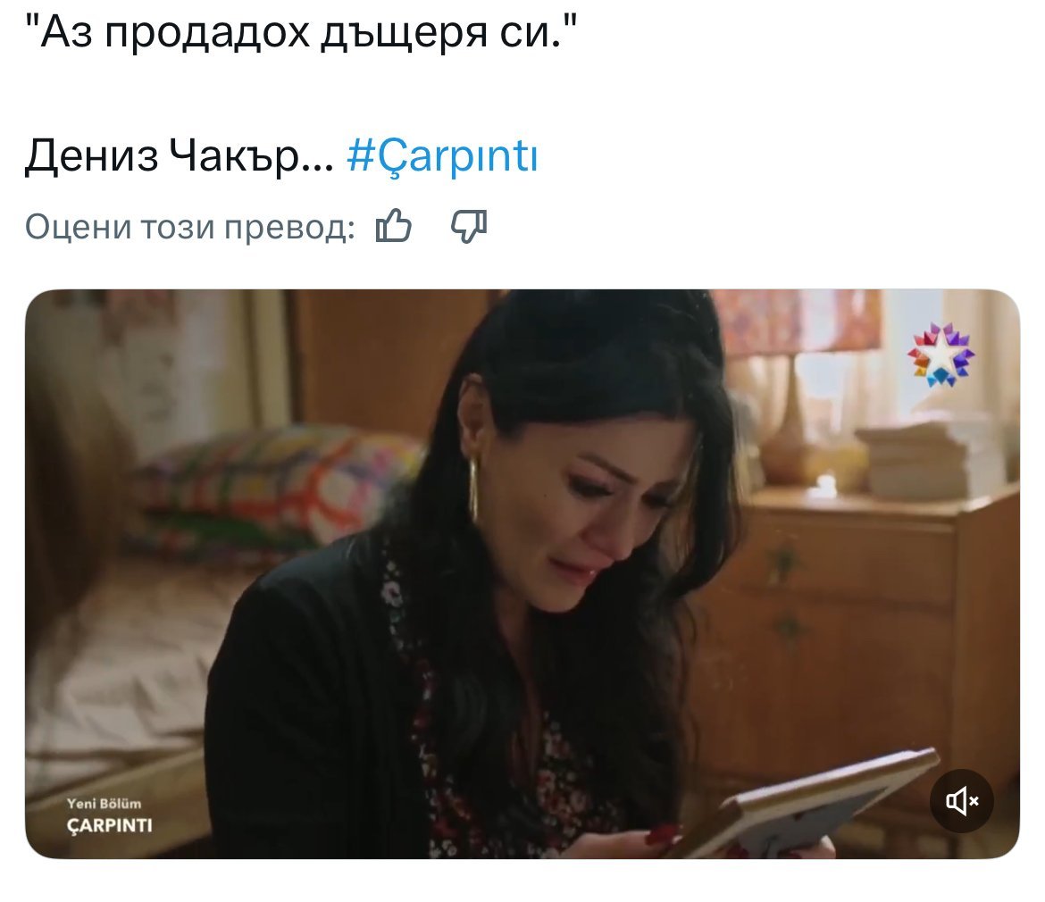 Изгледах „Любов и сълзи“ много объркан епизод. Много неща не ми станаха ясни: Къде отиде бащата на Мейра? Как Харун намери жена си? Операцията и възстановяването на Мейра даже няма да го коментирам. И защо всички завеят в една къща?
