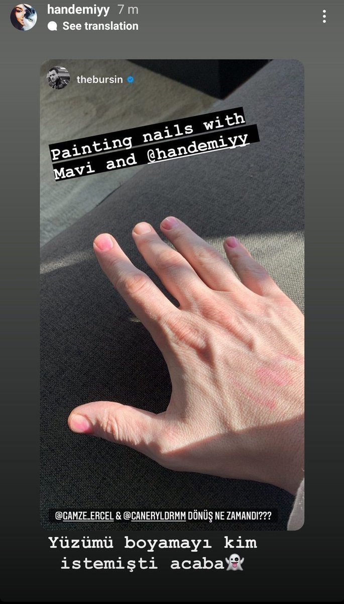 А тази незабравима ръка на Керем лакирана от Мави и надписана от Ханде с думичката Love...