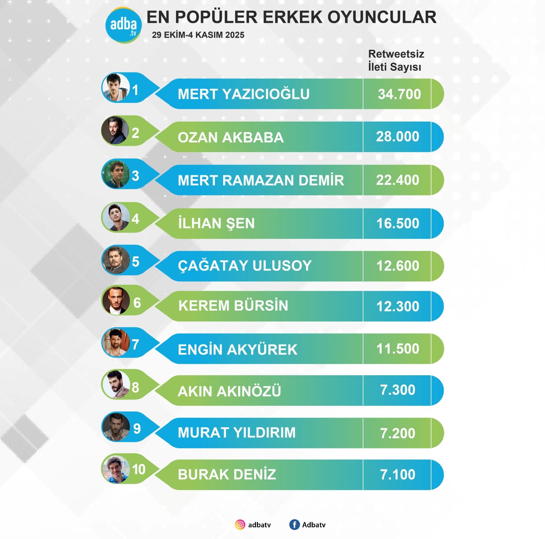 Адба обяви кои са най-популярните актьори на екрана за периода 29 октомври - 4 ноември. Тази седмица Керем е на 6-та позиция Simple Smile