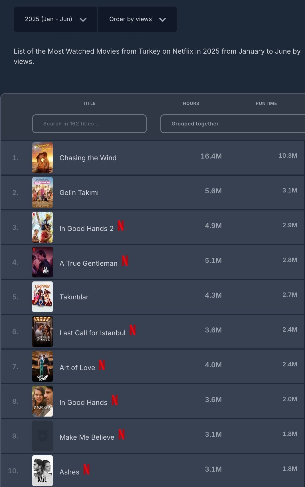 Според официалните данни на Netflix, #RüzgaraBırak е най-гледаният турски филм през първите шест месеца на 2025 г. (януари/юни).