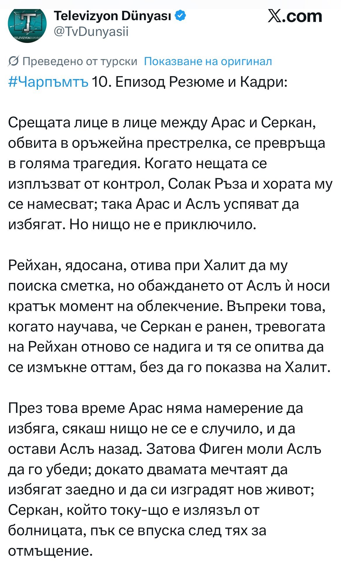 Нещо ми се струва, че почнаха да препускат през сюжета. Иначе трейлърът е интригуващ. Аз се радвам, че не е умрял Серкан, защото иначе Арас, щеше да е убиец. Очаквам към края бащата и сина мафиоти да се изтрепят взаимно.