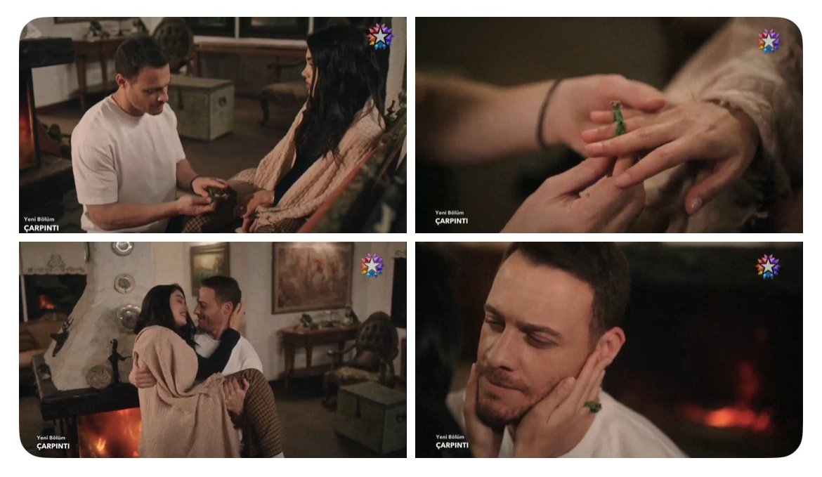 „-Направих това, докато ти спеше вътре, и съжалявам, че прибързах малко... Аслъ, не те питам това само за да можем да избягаме. Знаех, че този въпрос ще дойде един ден, още откакто те видях за първи път... Аслъ, обичам те толкова много, ще се омъжиш ли за мен?“