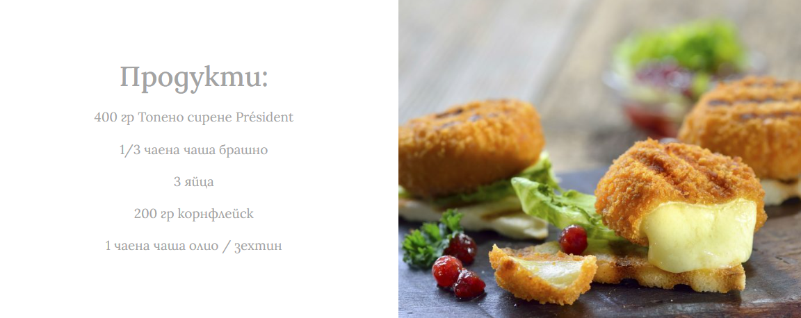 Панирани топени сиренцa President със сладко от боровинки, е върха!