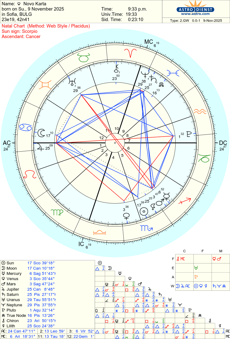 Чакахме весел стрелец, реши да е доста сериозен скорпион. Големия воден триъгълник в момента ми е върху наталнитр Слънце на 25 риби и Плутон на 25 скорпион.
