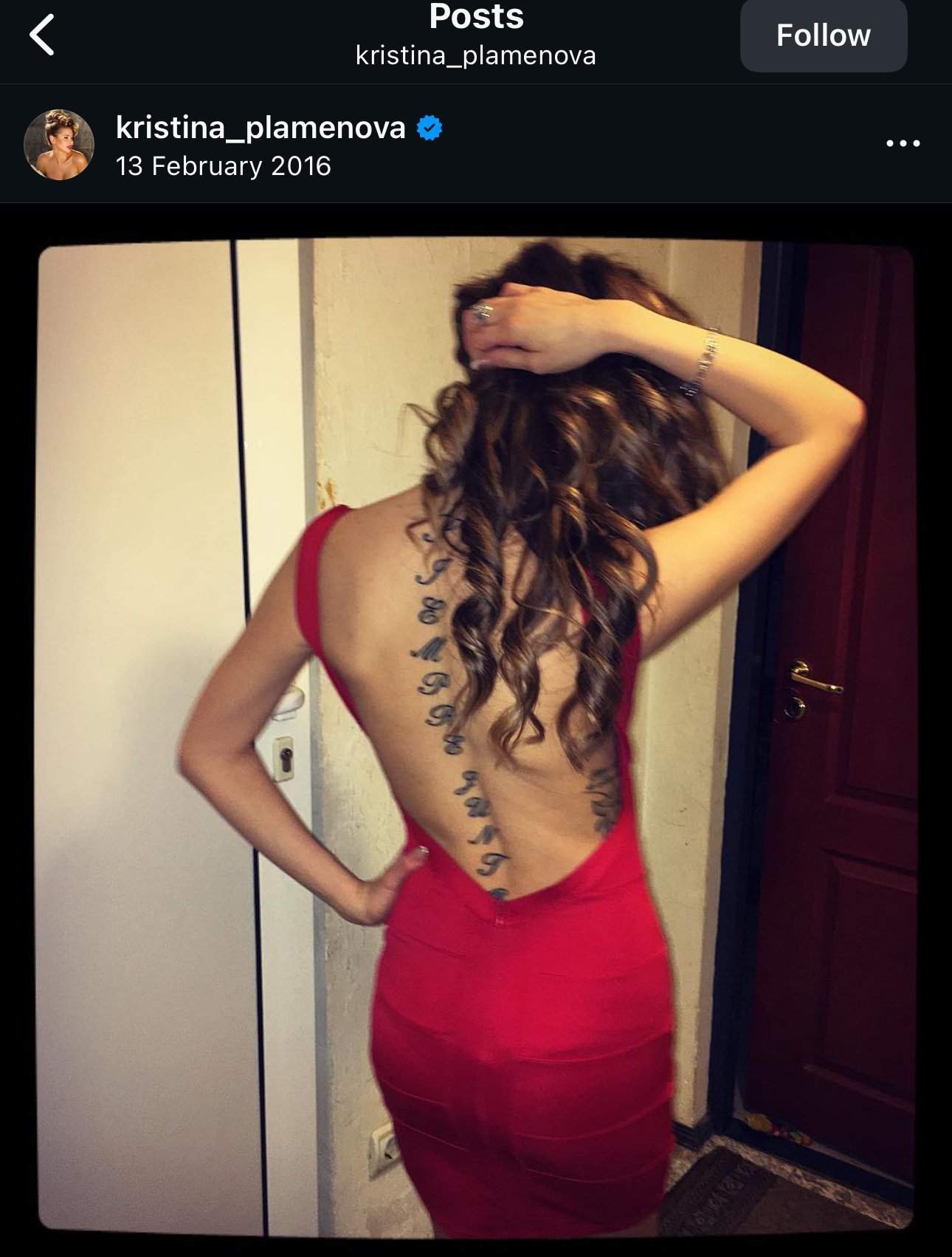 Е, то е ясно, че е с Кристина само от тази снимка, която е качил. Тя има същия татус от врата надолу по целия гръбначен стълб чак до дупето. Така, че не виждам никаква загадка.