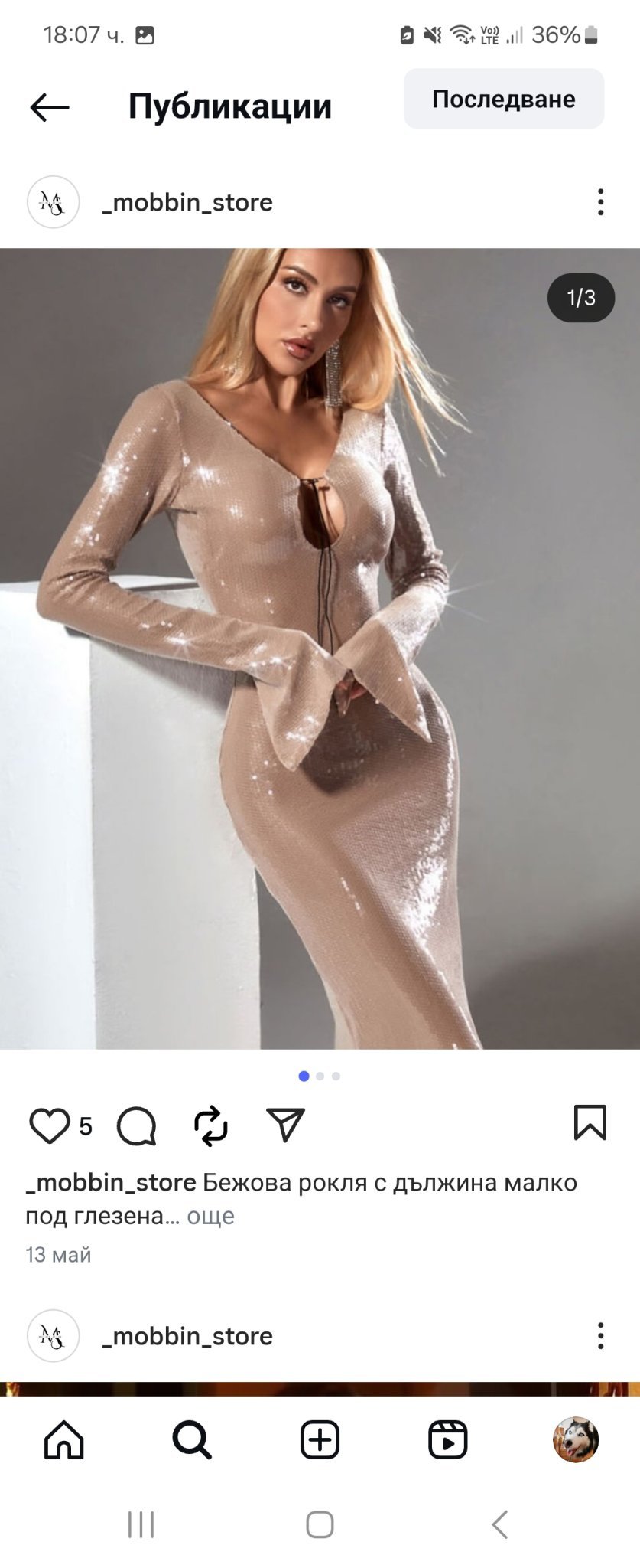 На мен на Блага много ми хареса роклята в последния епизод. Тази лъскавата, къса, телесен цвят/бледо розова, с широки ръкави в китките и дълбоко деколте с някакъв детайл по средата. Може ли да кажете от къде да си купя, ако не същата, то поне подобна?