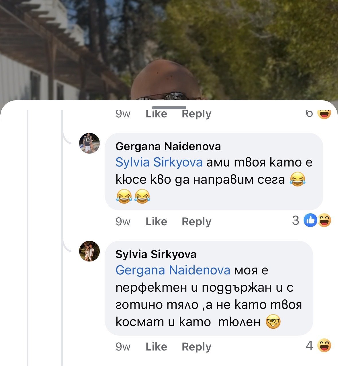 Все по-отвратителни са със сутеньора си Краси и дубайската шаврантия. Ходи по цял ден с гол гъз и си крепи парцала на увисващите дини и се мисли за графиня. Не знам как Красун не умира от срам като иде на ресторант с това нещо... Не, че е нещо повече от нея, но се мисли.