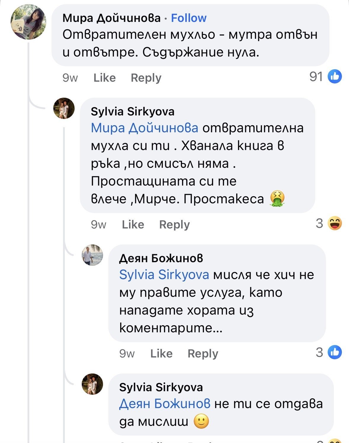 Няколко човека под клипчетата от предаването в Инстаграм бяха коментирали, че са подали сигнал до СЕМ. Не трябва да има търпимост към агресията и простащината, а ние сме много търпеливи - и на живо, като преки свидетели и като зрители. У нас простотията е норма, а не изключение.