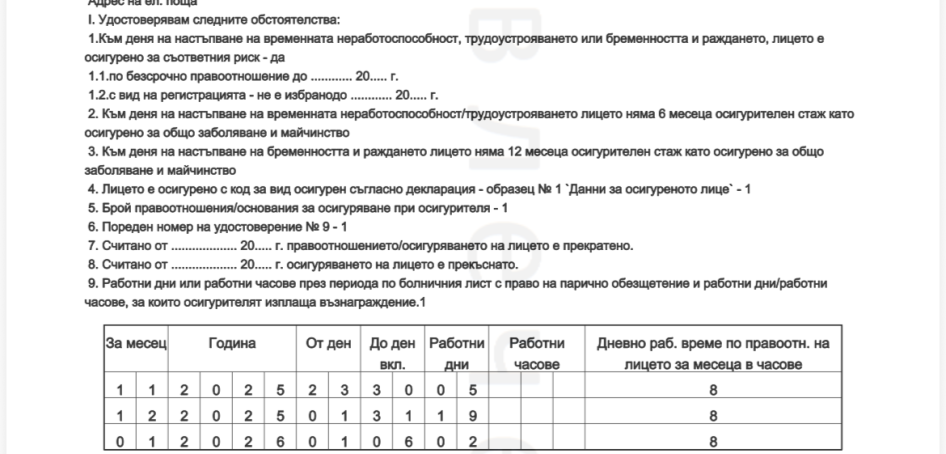 Моето удостоверение е по същия начин. Не е от това. Имам предвид, че то е по образец може би е едно и също. Точката щеше да е отбелязана по някакъв начин, ако нямаш стаж. Реално за декември цялата сума трябва да ти е изплатена, а за 01.01 до 07.01 също. Остатъка, или по скоро новия БЛ този месец до 10.02. Така мисля. Виж във ведомостта как излиза, като цъкнеш “преглед “ би трябвало да ти излезе плащанията по БЛ. А и новия БЛ от януари, работодател има срок до 10.02 да го входира.