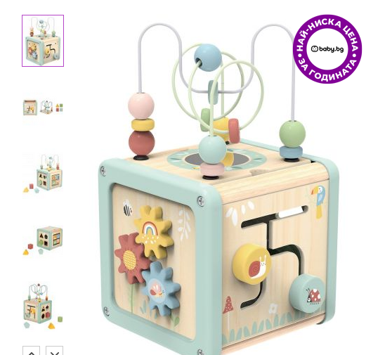 Ние имаме едно кубче за игра подарък от съседското дете. От страни има пластмасови рингове, с които дрънкаше от 3я месец някъде . Сега започна да ск играе и с музикалната страна. Имаме и тази част с назъбените колела, но още не ги ползва. Наскоро и извадих и тази играчка, но още не се заиграва с нея, според мен и е рано.