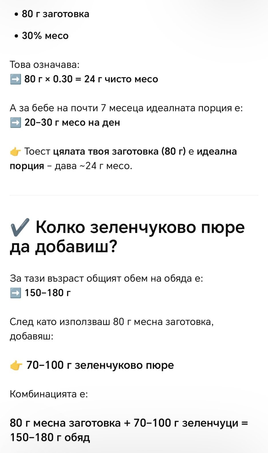 Ето информация и за заготовките, че сигурно има и други майки, които са забравили как се смятат проценти 🤣🤣🤣 Аз лично имам месни заготовки на Плазмон, които са 80гр. с 30% месо: