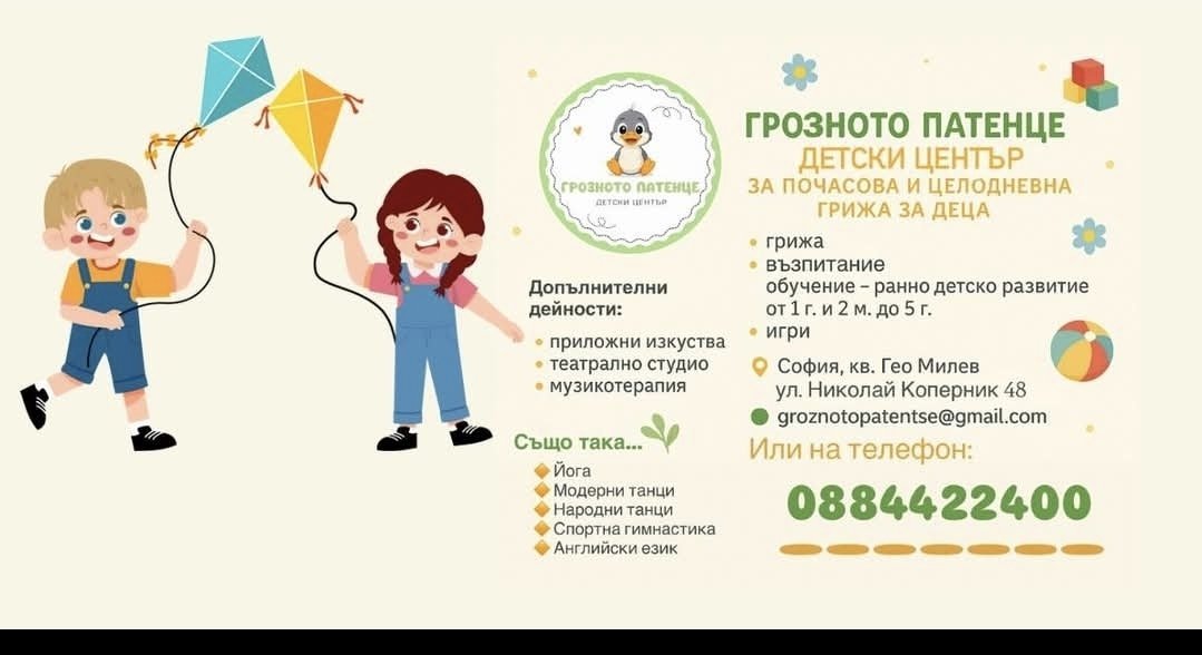 Благодаря за инфото, Мишле. Детският център на Коперник е близо с кола. Ние сме в съседният квартал. Ще ги проучим, ако стинем до там. Дано да имат и свободни места. Похвалиха ми една и в Дружба, но забравих името 😀