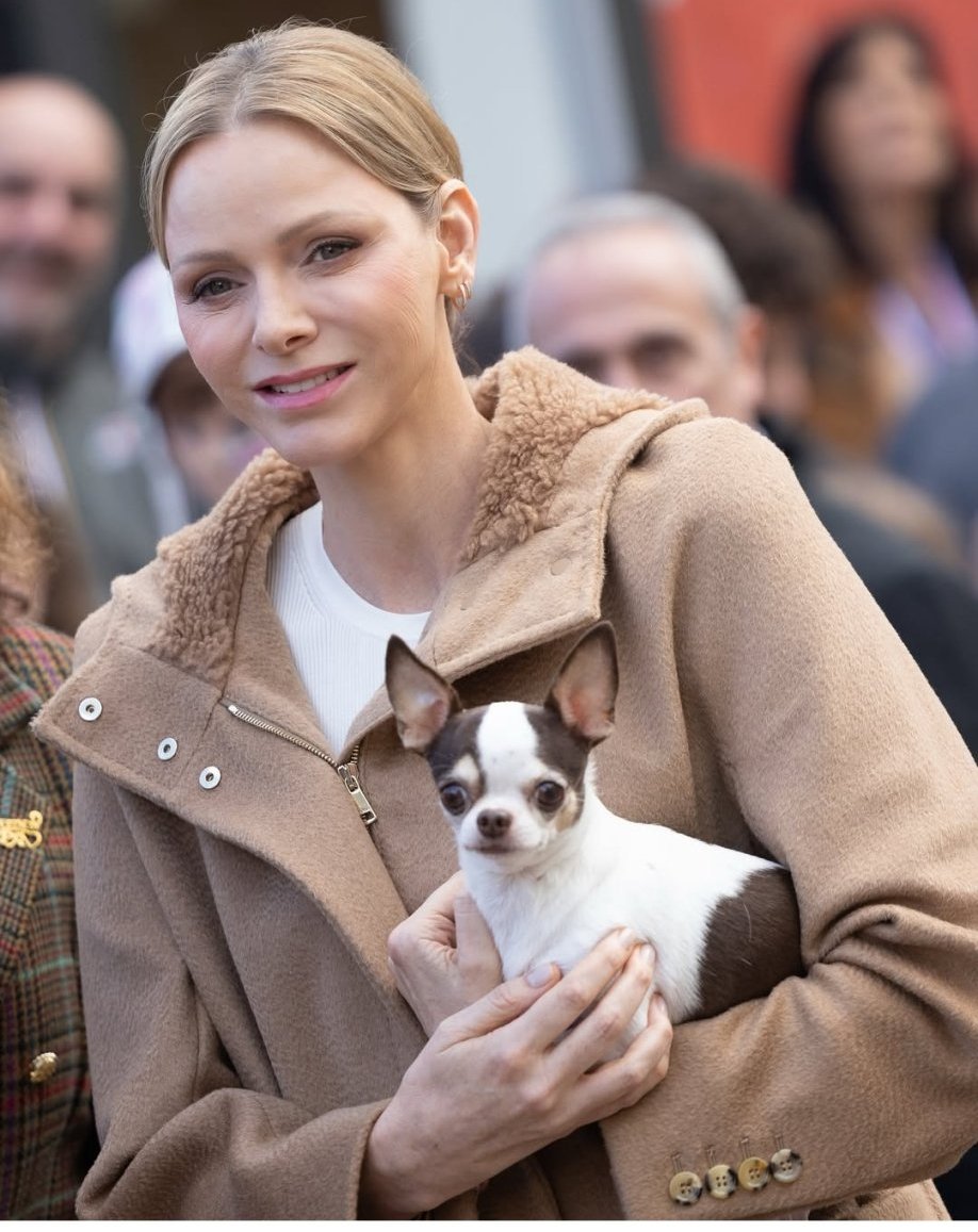 Придружени от 8-годишното си чихуахуа Харли, принцеса Шарлен и брат й Гарет Уитсток споделиха приятелски и ангажиран момент с многото участници в тази разходка.