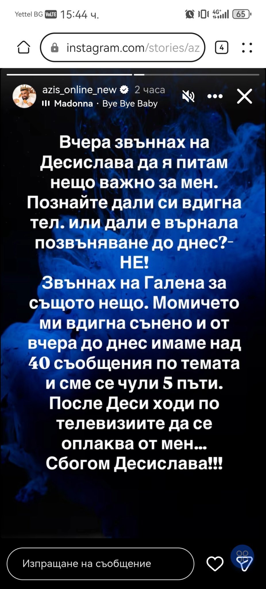 Азис за Десислава, чували сме колко е несериозна. Тя самата признава,че закъснява и т.н. Дали става въпрос за неговия концерт или за концерта на Деси 30 години..