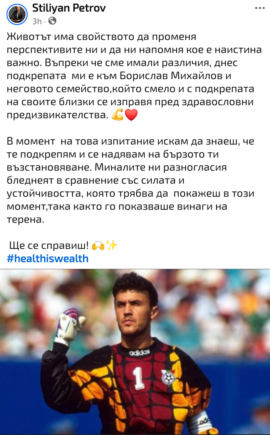 А думите на Стилиян Петров са наистина мил и трогателен жест от човек, преживял тежко заболяване, въпреки че многократно го е критикувал като президент на БФС и е от отбор "Бербатов".