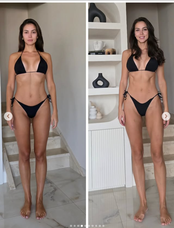 Богданска изглежда изтерзана от глад и лишения. Иначе, тялото ѝ е хубаво, сързамерно, но и с повече кг отгоре отново ще е такова. Не виждам смисъл да се изтезава толкова. И първата снимка също си е супер.