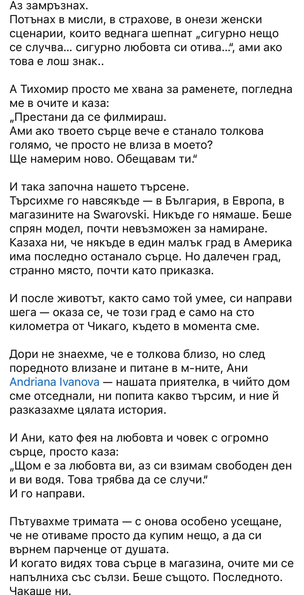 Божеееее, през цялото време мислех, че Венета пише няква минала сантиментална случка с нейния Тихомир. Чак на "Чикаго, където в момента сме" зацепих, че нещо не е както трябва и се върнах нагоре да видя пак кой го е писал 😀  То било Шоколадка и нейния енергиен трансформатор Тишо.