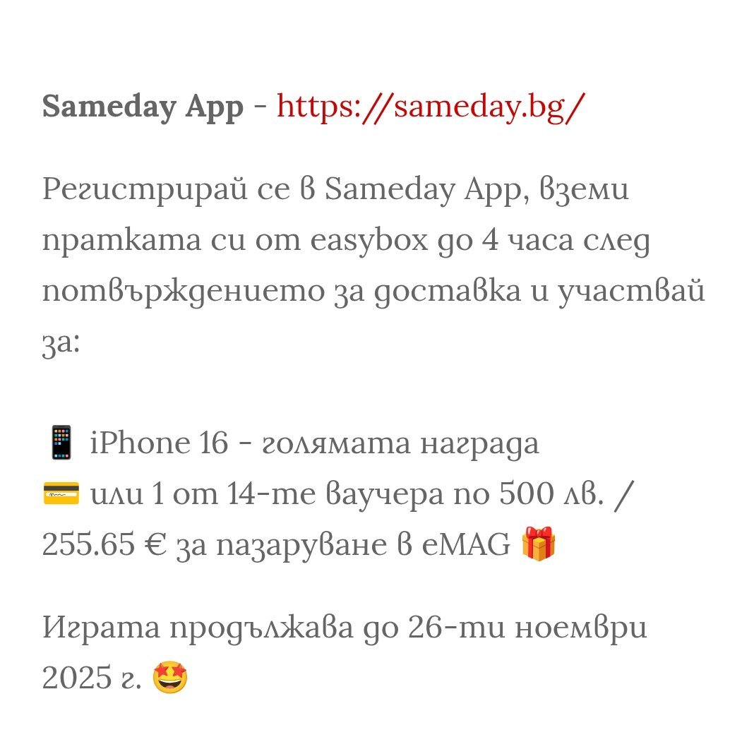 Да разкажа и аз подобен случай. Бях постнала, че съм спечелила от колелото на Дефендил. Преглеждам си тефтерчето с наградите и гледам тази награда не съм я получила. Пиша имейл, нищо. После звънят извиняват се, уволнили мъжа, който отговоря за промоцията и ще ми пратят 2 награди - една, която съм спечелила и една за децата. Пак намазаха. Благодарна съм , че ме компенсират, жест е , но и ние трябва да си търсим правата , когато се налага . Поствам една игра на Same-day  , много ме е яд че не мога да участвам онзи ден получих чрез тях ама заявих куриер , а не до бокс 😄