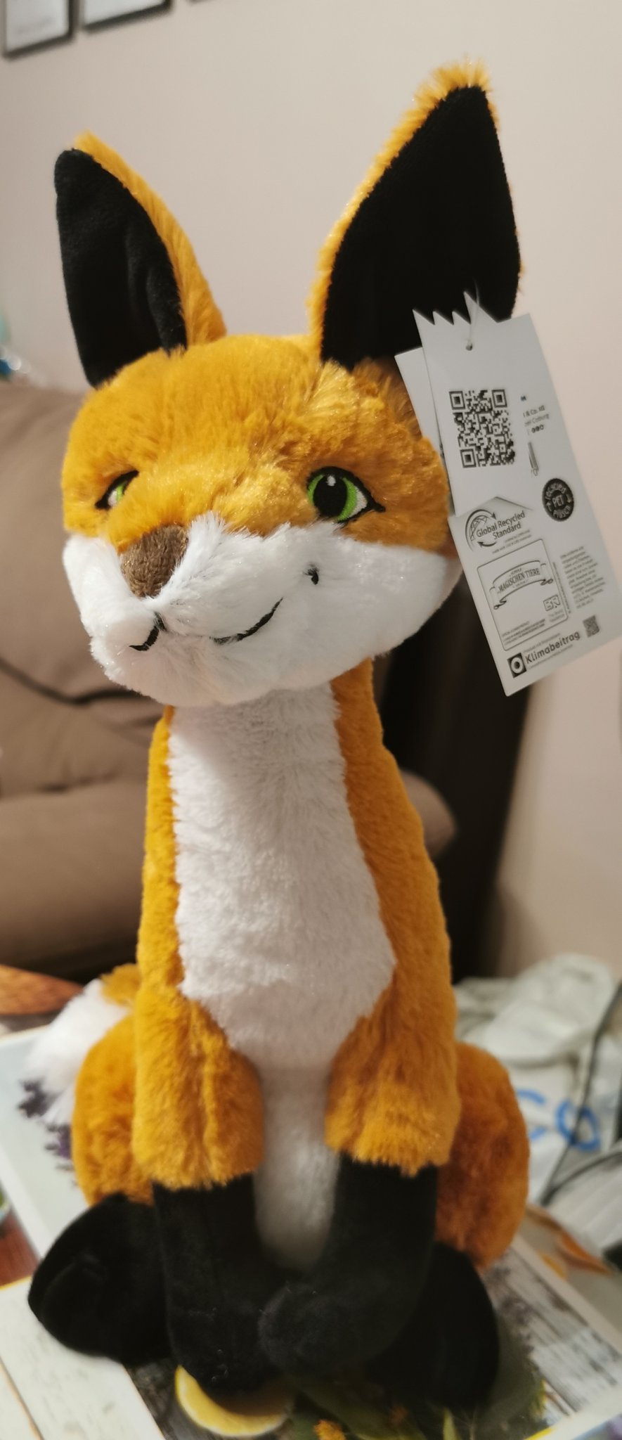Искам и да ПОДАРЯ една много сладка лисичка (отново спечелена в ИГ), която най-накрая успях да взема миналата седмица. Очаквах да е по-зле, но реално е доста симпатична. Висока е около 30-35 см. Та ако има някой, който много би й се зарадвал - за него ще е! Моите деца не си падат много по плюшени играчки и съм убедена, че ще й се зарадват за 5 мин., после ще се скарат и никой никога повече няма да я погледне... Затова реших да я подаря! Simple Smile